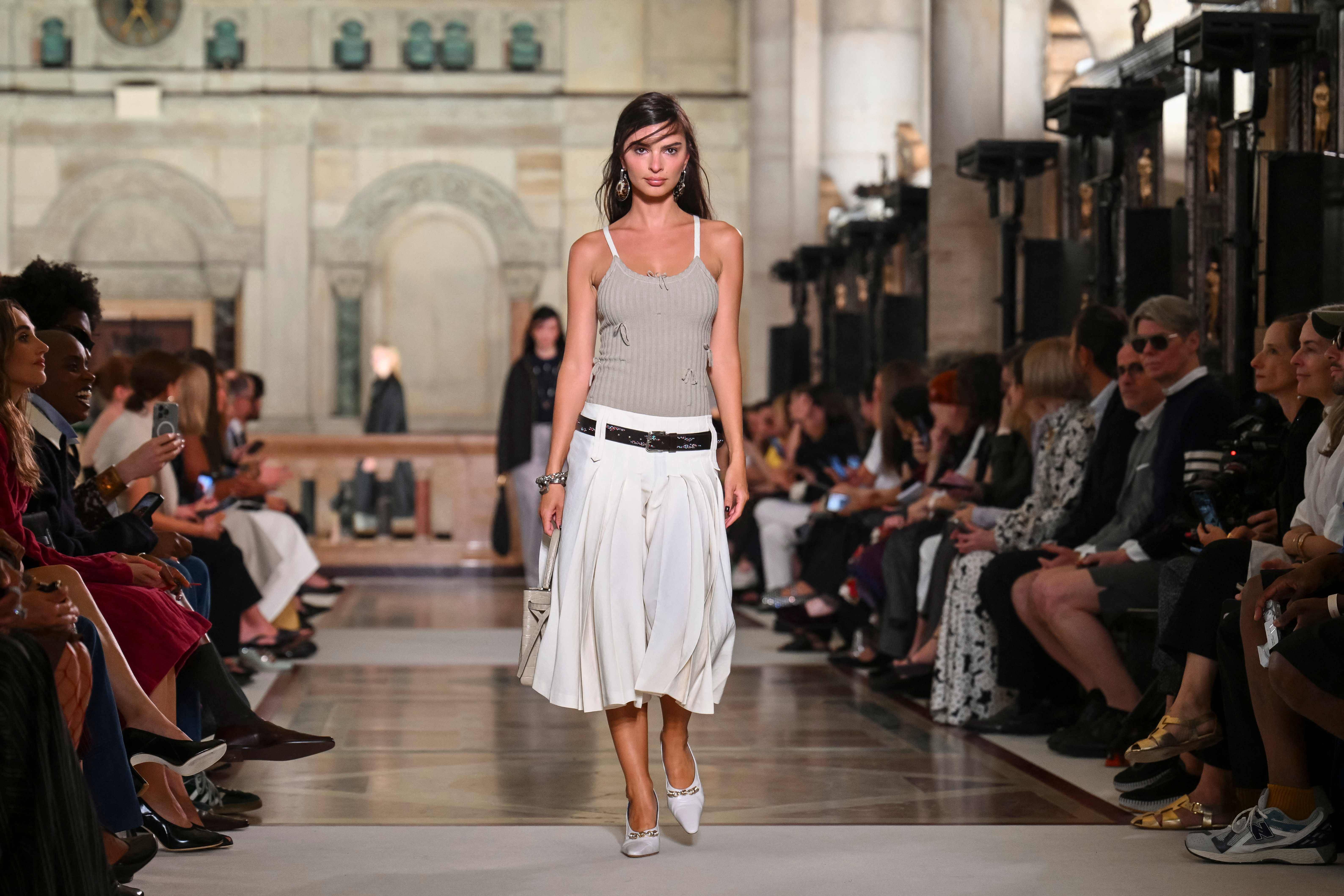 9月15日,模特在美国纽约时装周上展示Tory Burch品牌的2026春夏新品时装。 新华社/法新