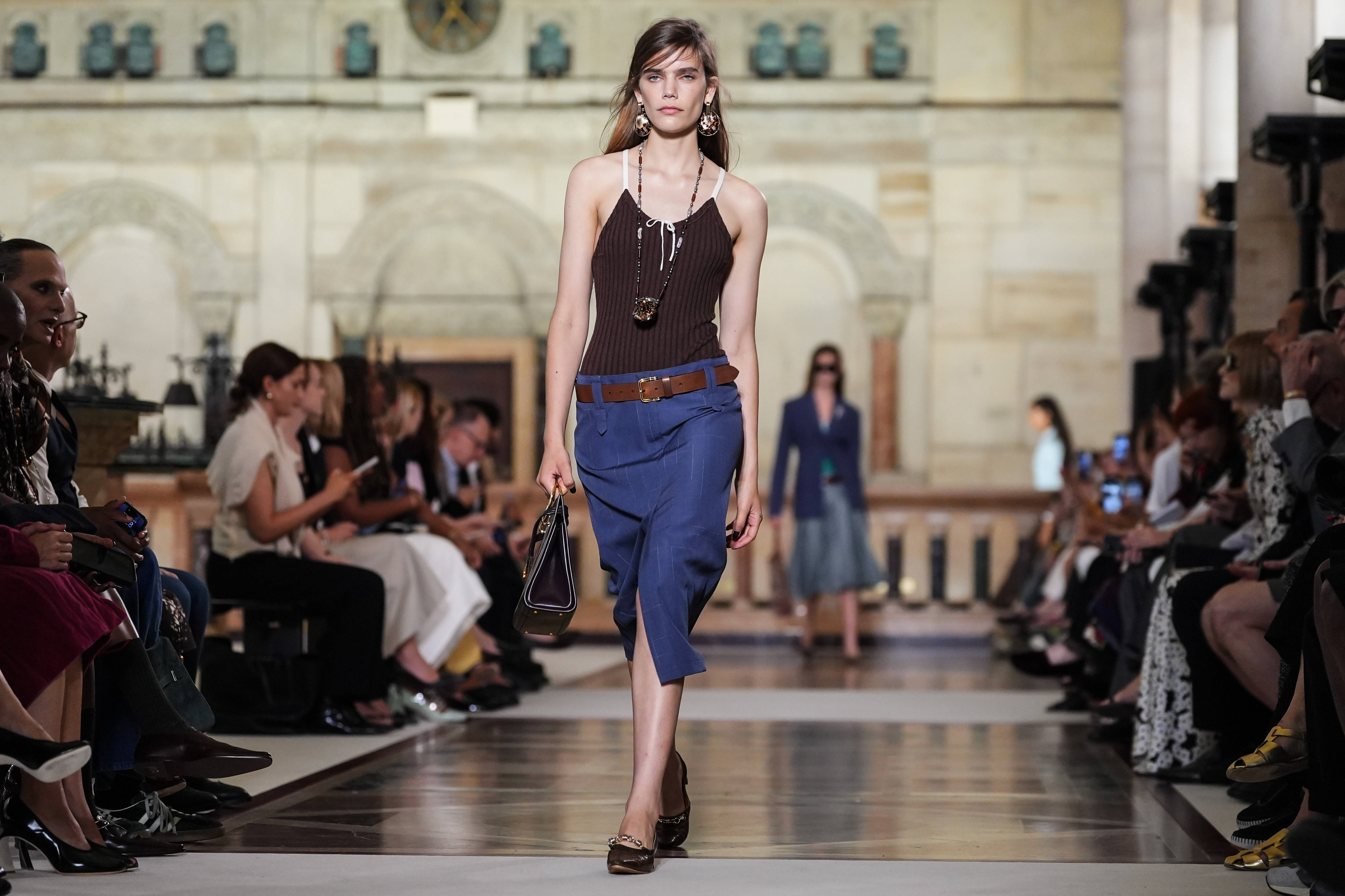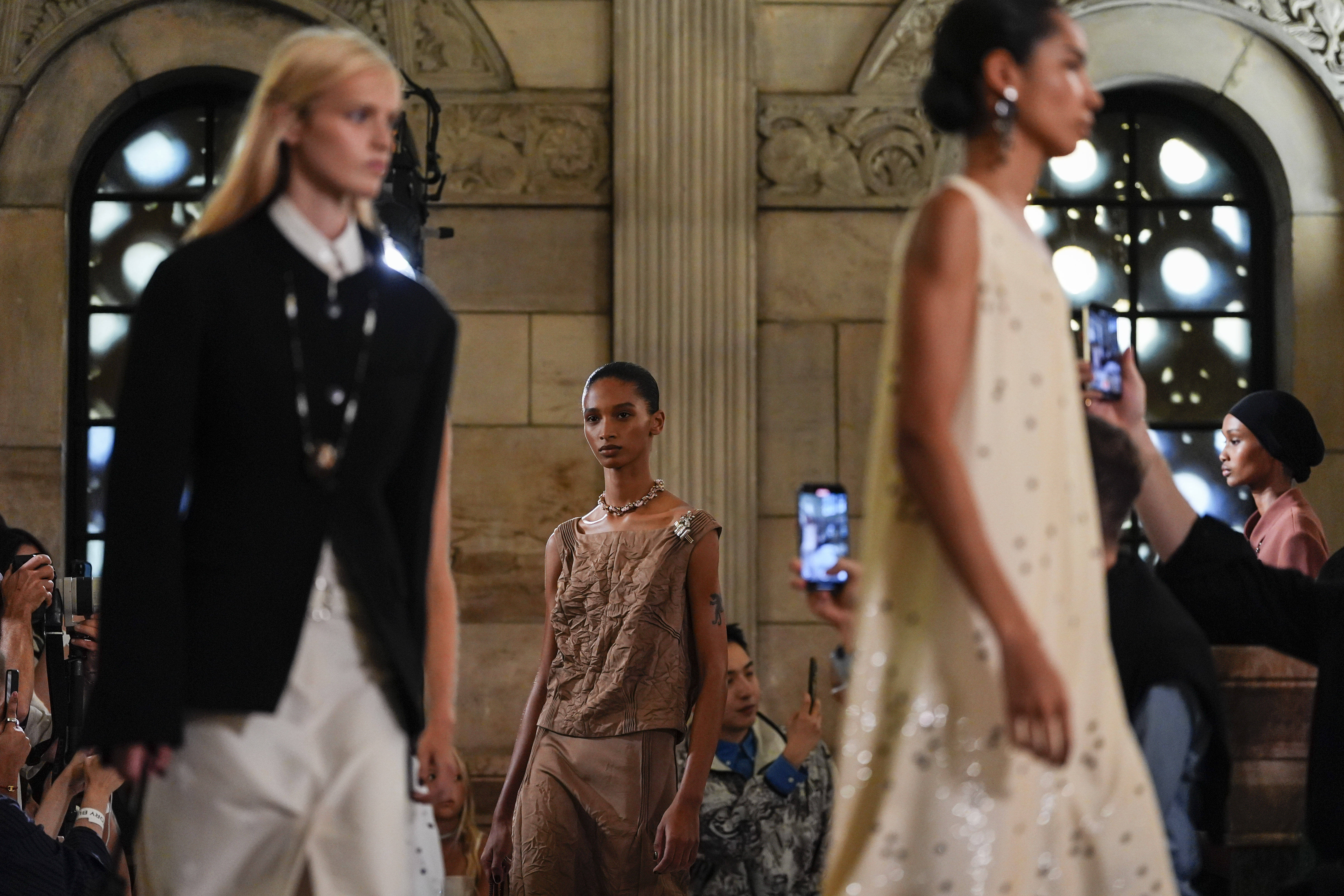 9月15日,模特在美国纽约时装周上展示Tory Burch品牌的2026春夏新品时装。 新华社/美联